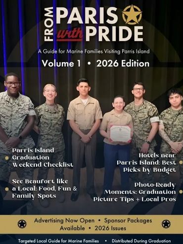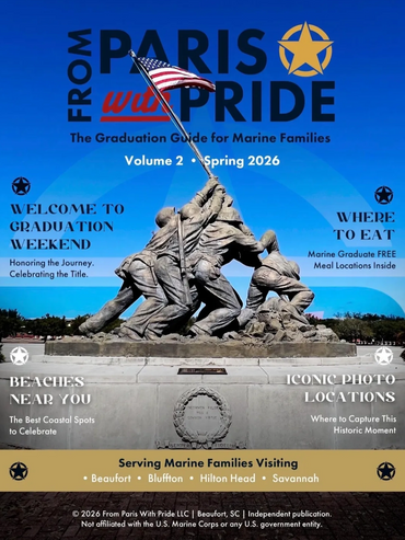 Subscribe to receive the newest issue of From Paris With Pride and discover local businesses, dining, lodging, and experiences welcoming Marine families visiting the Parris Island area.
